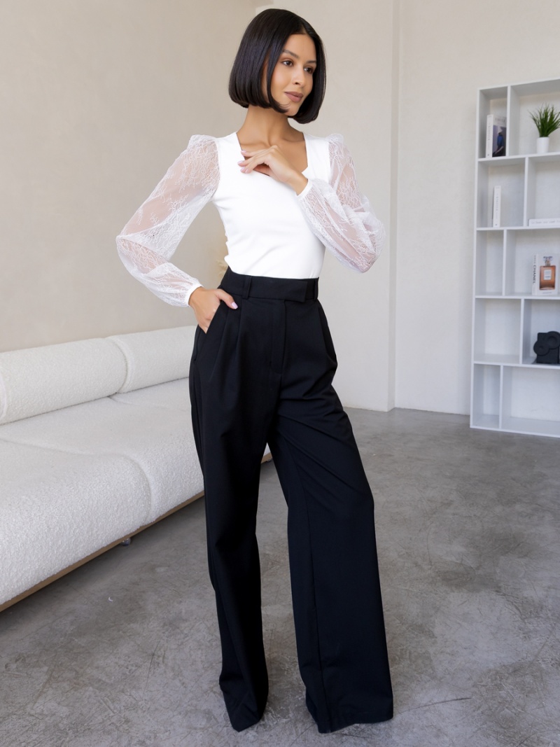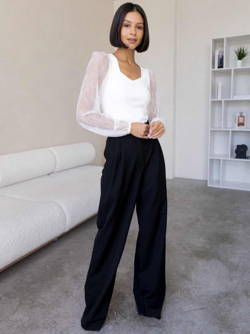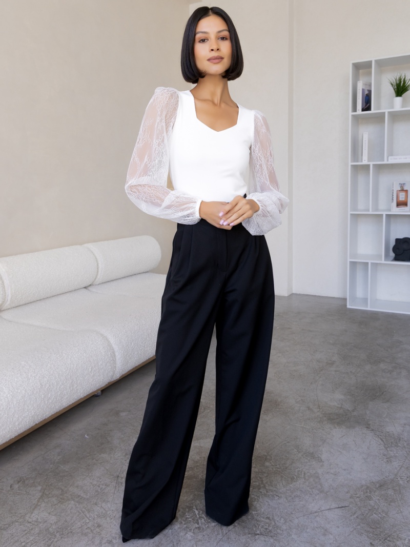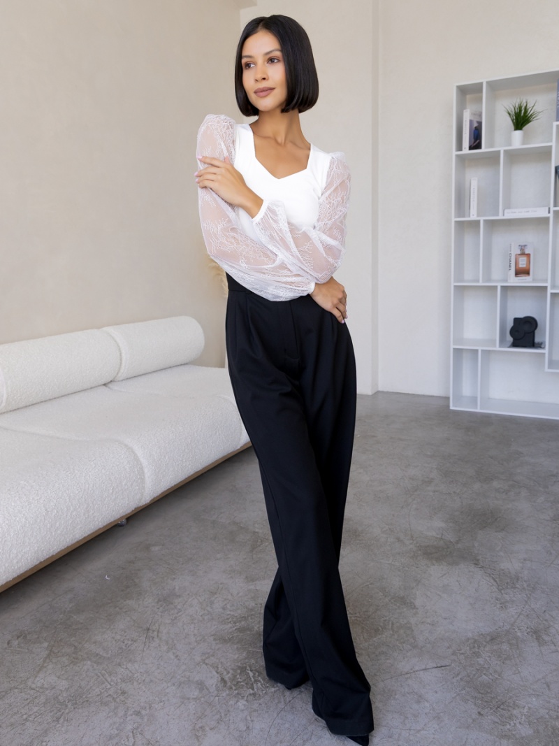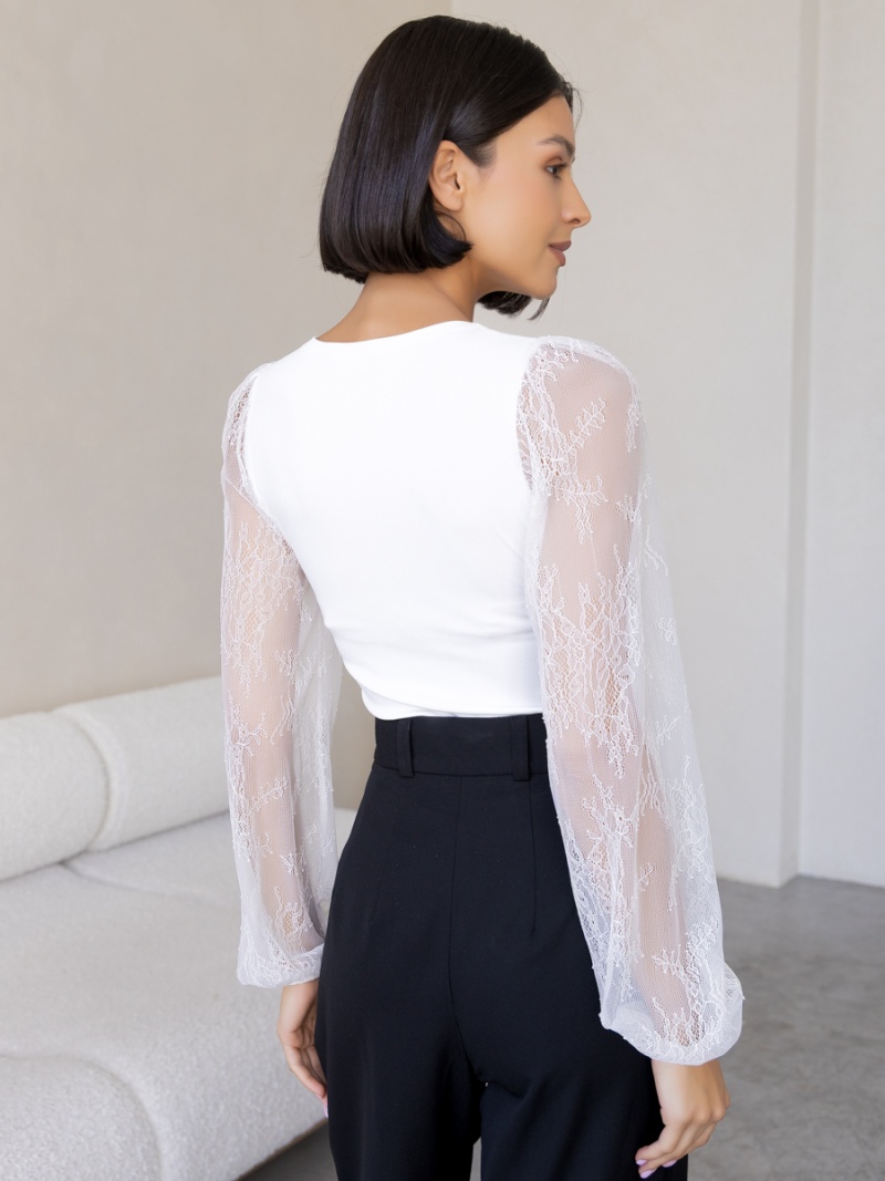 Блузка приталенного силуэта. Рукав длинный втачной из гипюра. Низ рукава на резинке. Вырез блузки "Каре". Длина по спинке 54 см. Будь стильной вместе с одеждой Вишня!