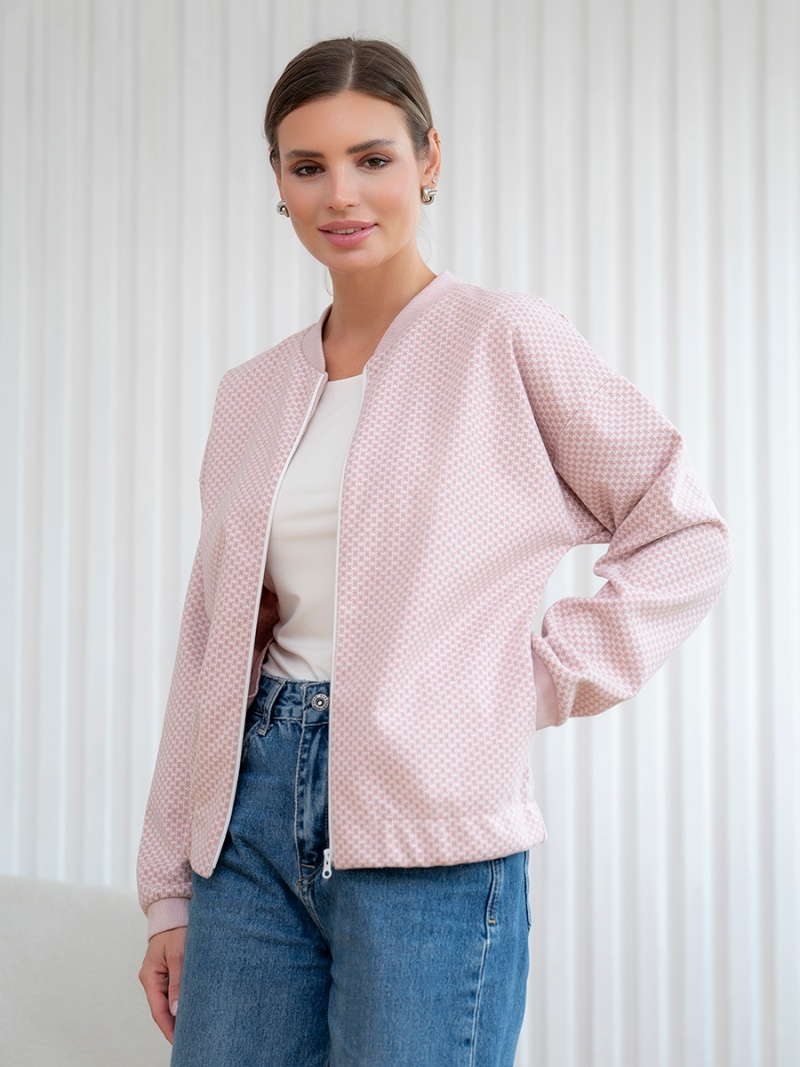 Трикотажный бомбер на молнии без подклада. Силуэт прямой. Рукав спущенный. По горловине воротничок-стойка из компаньона. Низ изделия на широкой резинке. Длина по спинке 57 см. Будь стильной вместе с одеждой Вишня.