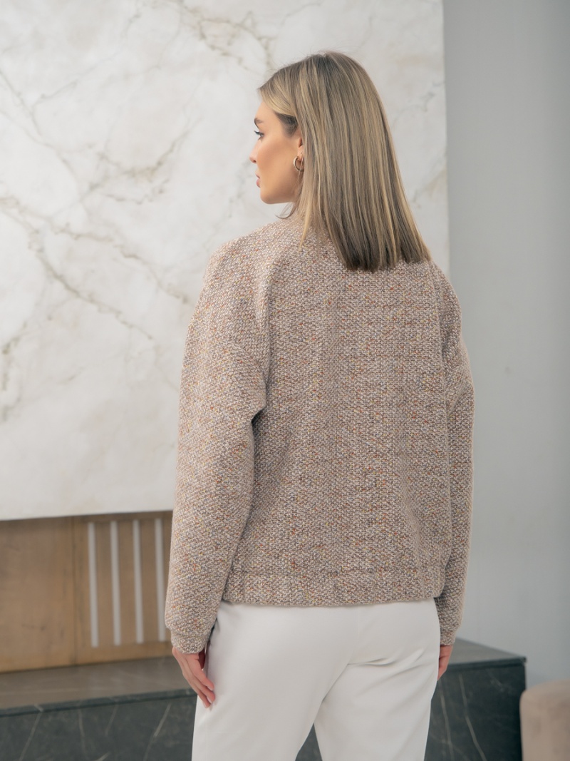 Трикотажный бомбер на молнии без подклада. Силуэт прямой. Рукав спущенный. По горловине воротничок-стойка. Низ изделия на широкой резинке. Длина по спинке 58 см. Будь стильной вместе с одеждой Вишня!