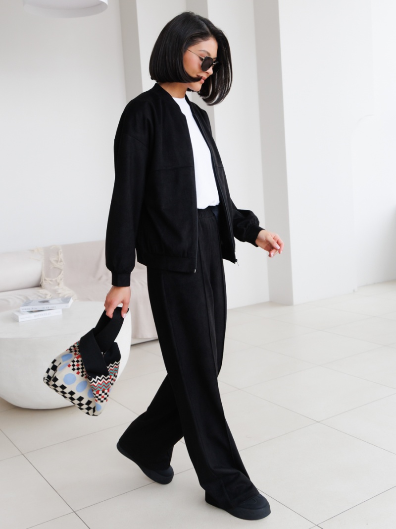 Бомбер свободного силуэта из однотонной эко-замши. Рукав спущенный, прямой. Низ рукава на манжете. Низ изделия оформлен притачным поясом. Воротник - стойка. Длина по спинке 58 см. Для завершения образа можете скомплектовать бомбер с брюками из нашей новой коллекции! Будь стильной вместе с одеждой Вишня!