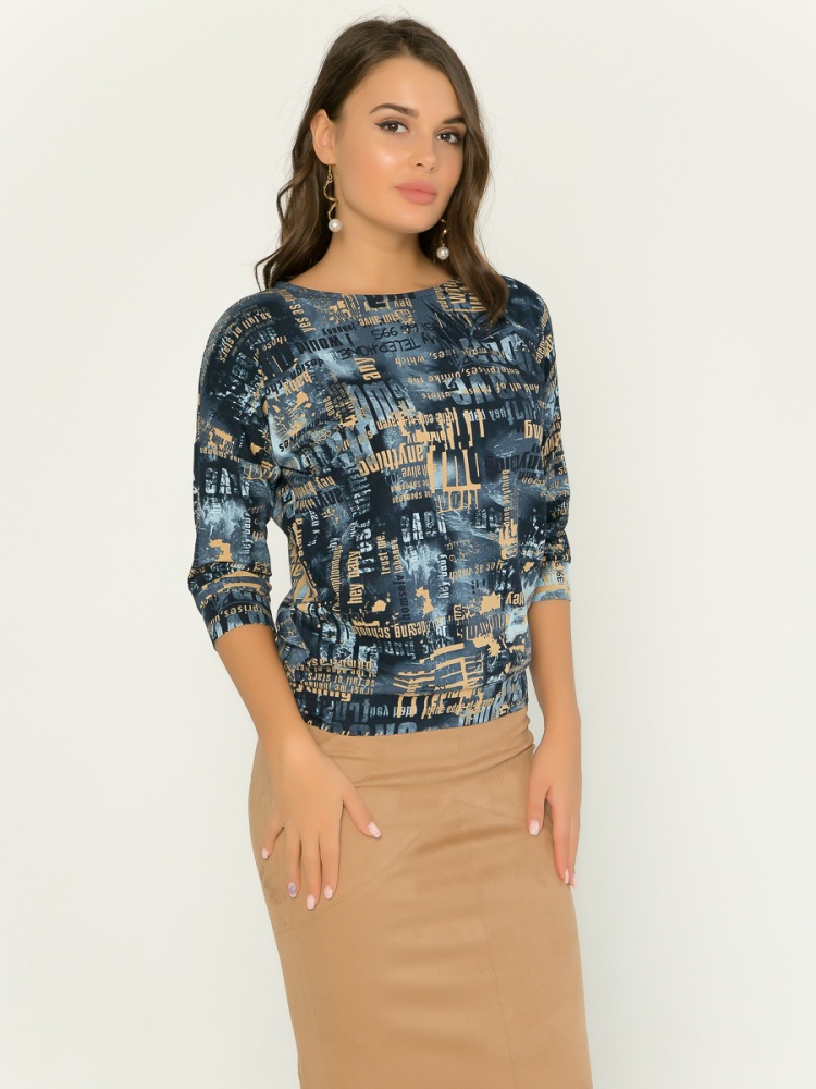 Джемпер из тонкого трикотажа. Покрой свободный, плечо немного спущено, за счет чего джемпер красиво драпируется на фигуре и подчеркивает женственность силуэта. Рукав три четверти с манжетой. Низ джемпера собран на пояс, свободно лежащий на бедрах. Длина по спинке 57 см.