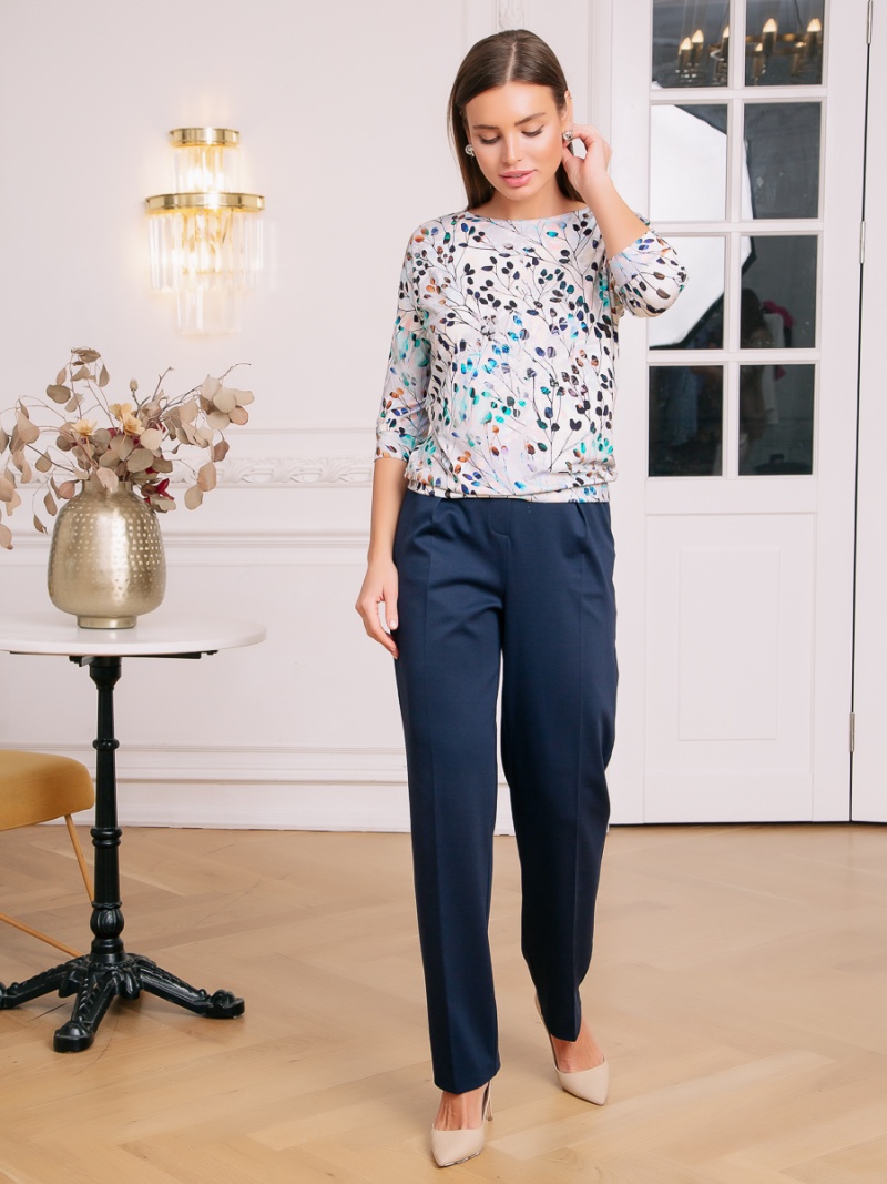 Джемпер из тонкого трикотажа с принтом. Покрой свободный, плечо немного спущено, за счет чего джемпер красиво драпируется на фигуре и подчеркивает женственность силуэта. Рукав с манжетой до локтя. Низ джемпера собран на пояс, свободно лежащий на бедрах. Длина по спинке 57 см. Будь стильной вместе с одеждой Вишня.