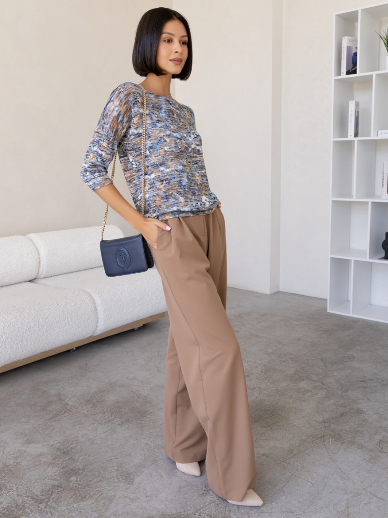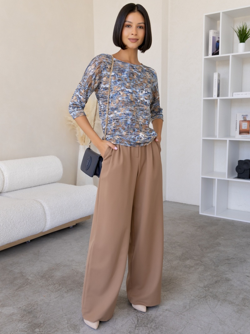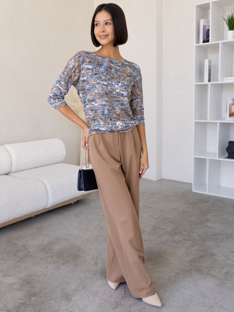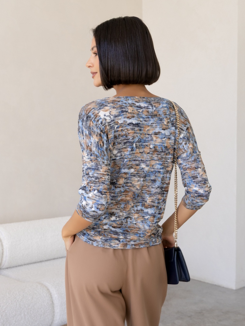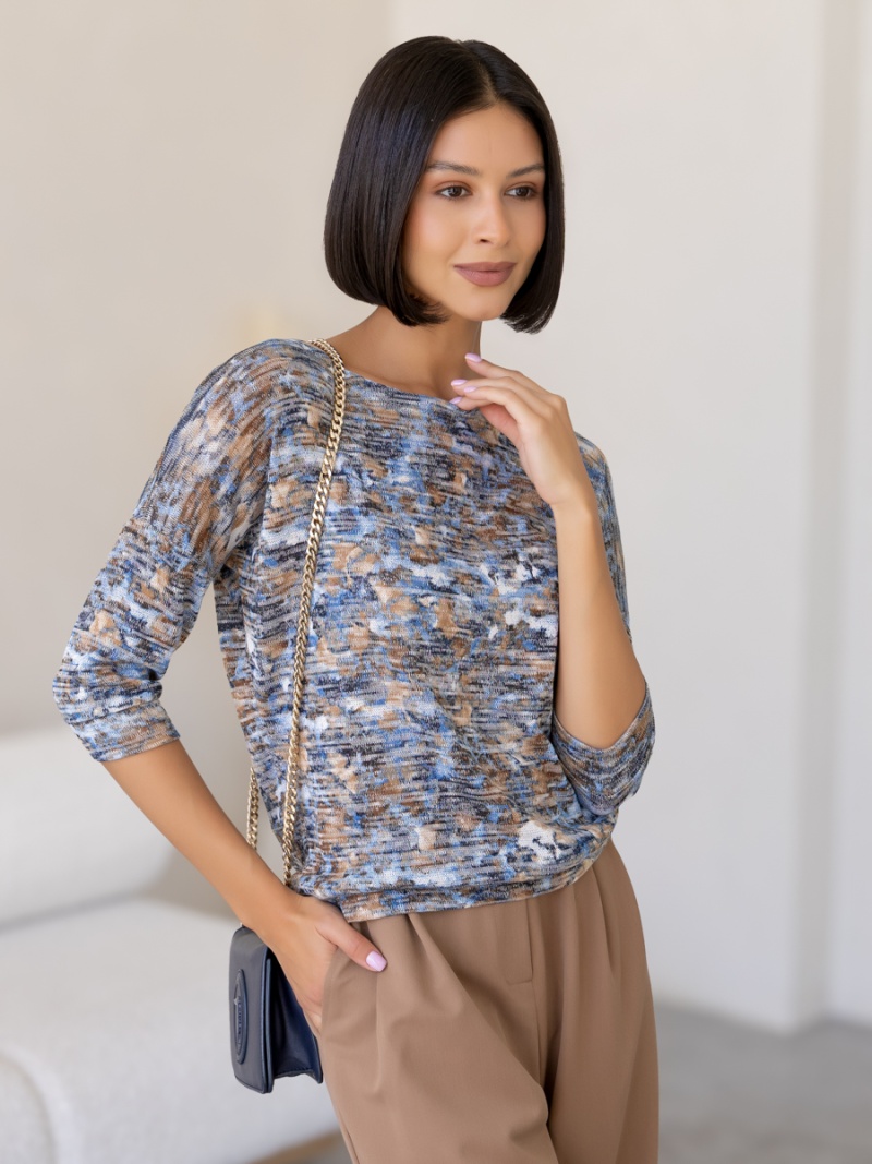 Джемпер из мягкого меланжевого трикотажа. Покрой свободный, плечо немного спущено, за счет чего джемпер красиво драпируется на фигуре и подчеркивает женственность силуэта. Рукав три четверти с манжетой. Низ джемпера собран на пояс. Длина по спинке 53 см. Будь стильной вместе с одеждой Вишня!