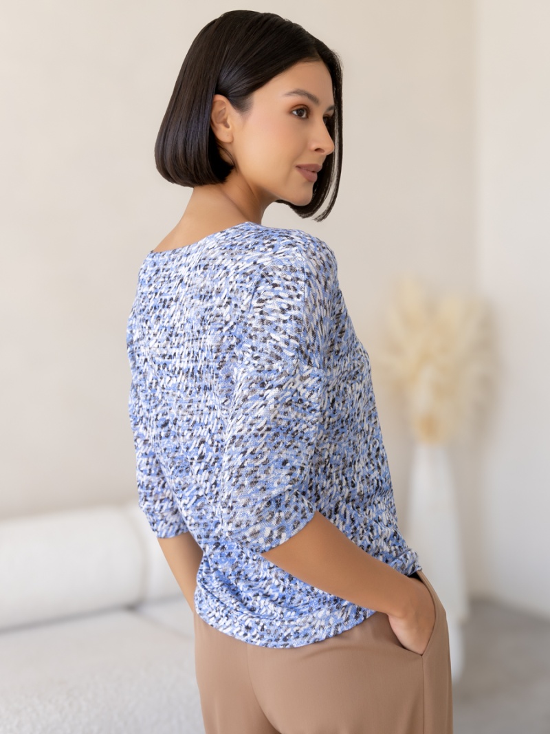 Джемпер из мягкого меланжевого трикотажа. Покрой свободный, плечо немного спущено, за счет чего джемпер красиво драпируется на фигуре и подчеркивает женственность силуэта. Рукав три четверти с манжетой. Низ джемпера собран на пояс. Длина по спинке 53 см. Будь стильной вместе с одеждой Вишня!