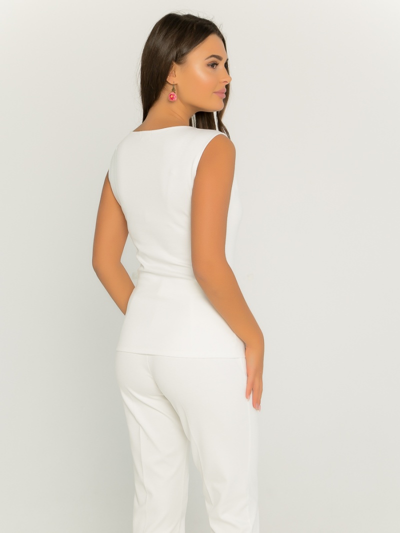 Топ из плотной эластичной ткани облегающего силуэта с декоративными отстрочками по переду. Длина по спинке 57 см.