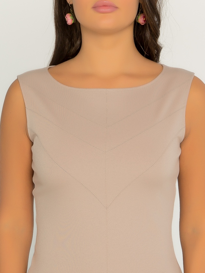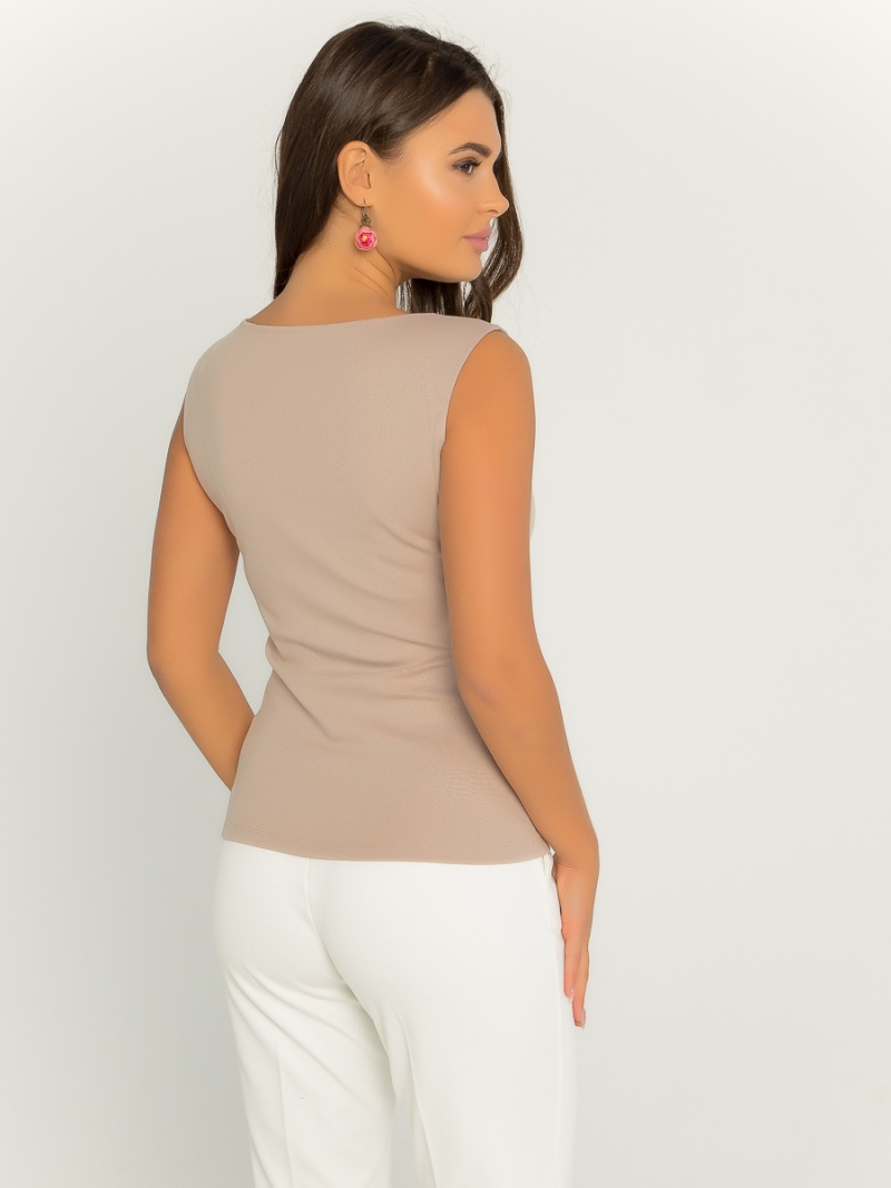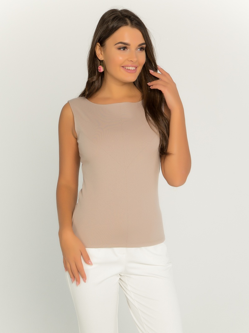 Топ из плотной эластичной ткани облегающего силуэта с декоративными отстрочками по переду. Длина по спинке 57 см.