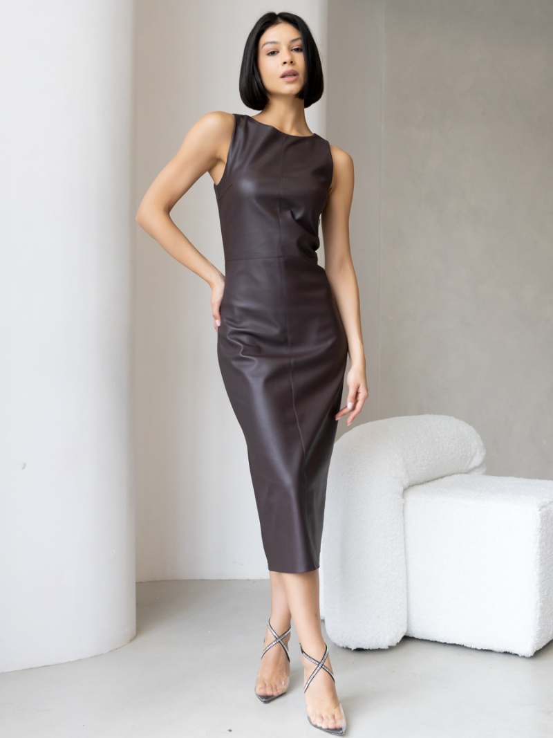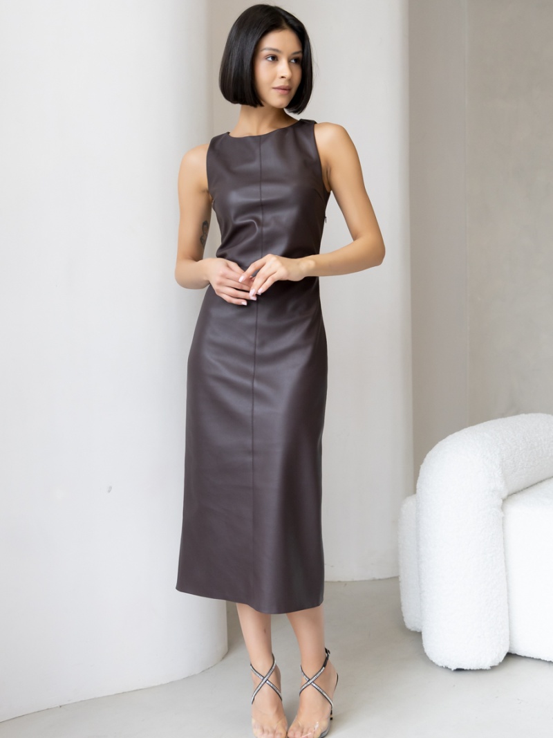 Платье-футляр длины миди с разрезом сзади из эластичной эко-кожи с замшевой изнанкой . Кожа незначительно растягивается и за счет этого платье идеально садится по фигуре. Без рукава, отрезная линия талии. Застежка на молнию в боковом шве. Длина по спинке 119 см. Будь стильной вместе с одеждой Вишня!