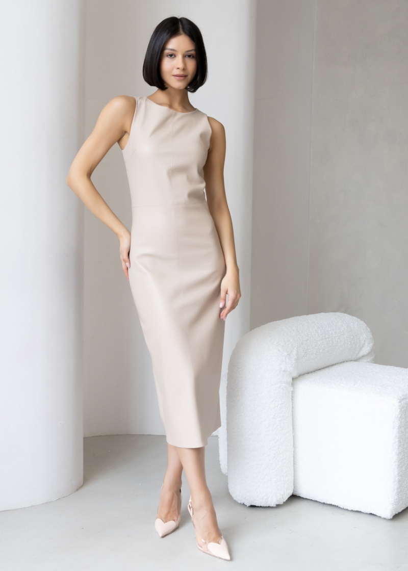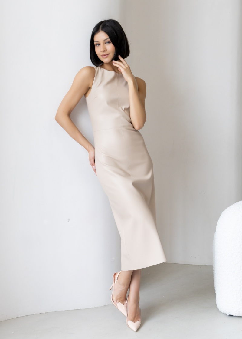 Платье-футляр длины миди с разрезом сзади из эластичной эко-кожи с замшевой изнанкой . Кожа незначительно растягивается и за счет этого платье идеально садится по фигуре. Без рукава, отрезная линия талии. Застежка на молнию в боковом шве. Длина по спинке 119 см. Будь стильной вместе с одеждой Вишня!