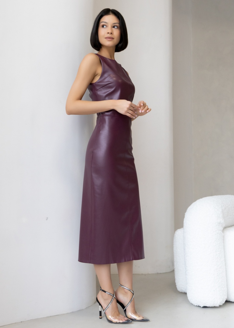 Платье-футляр длины миди с разрезом сзади из эластичной эко-кожи с замшевой изнанкой . Кожа незначительно растягивается и за счет этого платье идеально садится по фигуре. Без рукава, отрезная линия талии. Застежка на молнию в боковом шве. Длина по спинке 119 см. Будь стильной вместе с одеждой Вишня!