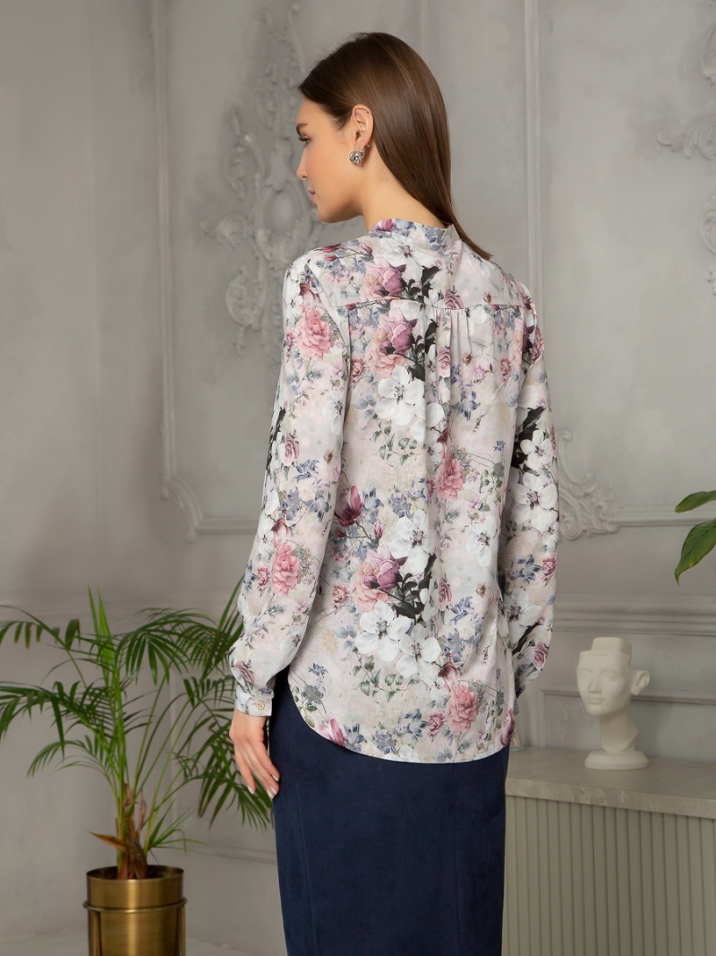 Блузка из тонкой ткани с принтом. Рукав втачной, на манжете. Спереди застежка на пуговицы. Силуэт полуприлегающий. Длина по спинке 70 см. Будь стильной вместе с одеждой Вишня.
