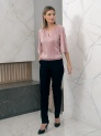 Блузка из гофрированной эластичной ткани с блеском. Силуэт прямой. Низ блузки собран на пояс. Рукав расклешенный типа "колокол". Горловина округлая с разрезом спереди и декоративной пуговицей. Из-за особенности ткани утюжка не рекомендована. Достаточно высушить блузу после ручной стирки на мягком полотенце на ровной поверхности. Длина по спинке 55 см. Будь стильной вместе с одеждой Вишня!
