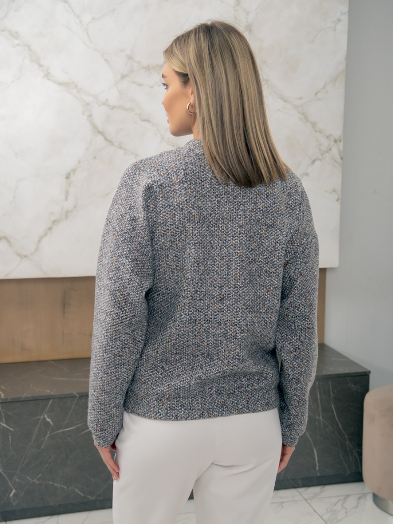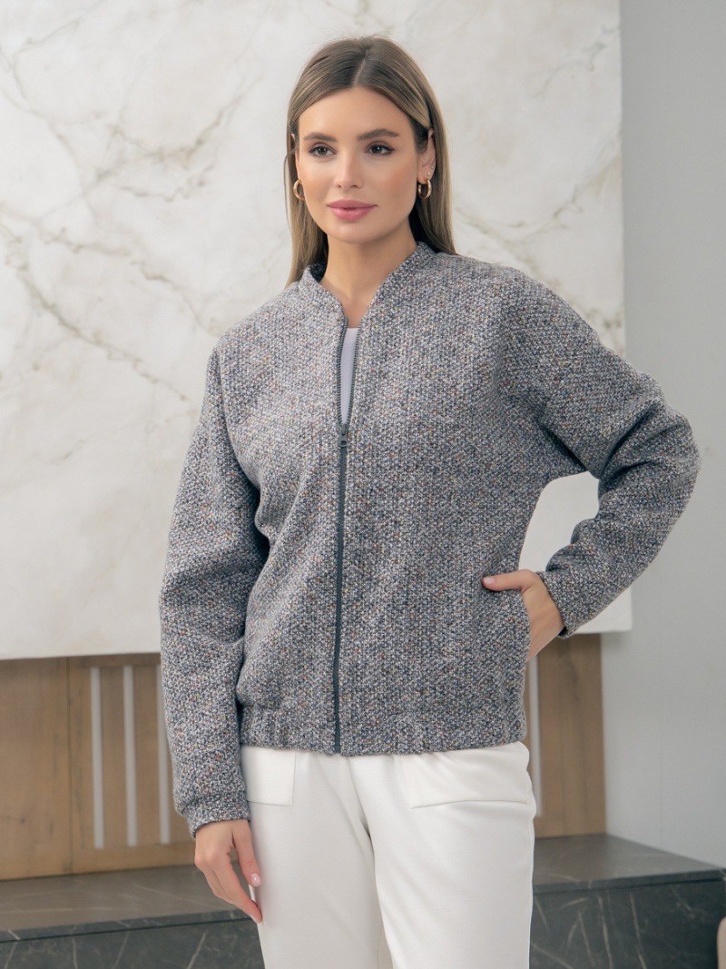Трикотажный бомбер на молнии без подклада. Силуэт прямой. Рукав спущенный. По горловине воротничок-стойка. Низ изделия на широкой резинке. Длина по спинке 58 см. Будь стильной вместе с одеждой Вишня!