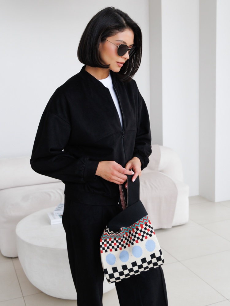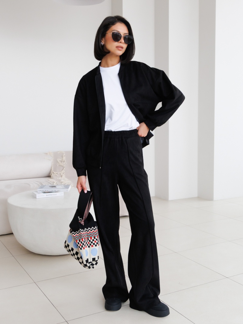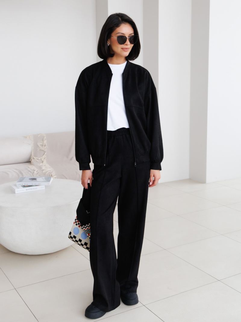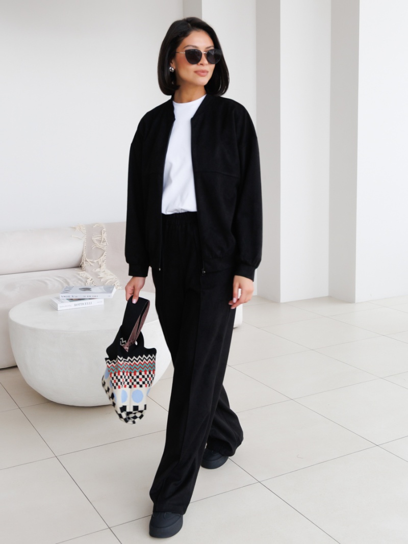 Бомбер свободного силуэта из однотонной эко-замши. Рукав спущенный, прямой. Низ рукава на манжете. Низ изделия оформлен притачным поясом. Воротник - стойка. Длина по спинке 58 см. Для завершения образа можете скомплектовать бомбер с брюками из нашей новой коллекции! Будь стильной вместе с одеждой Вишня!