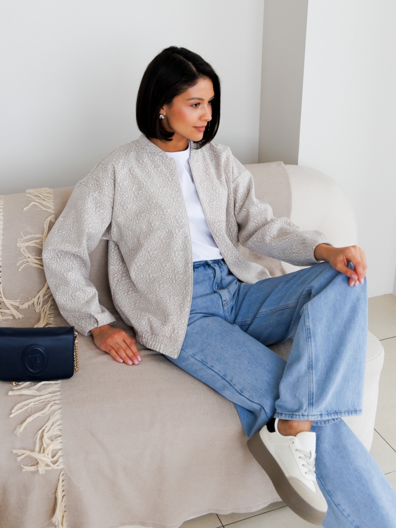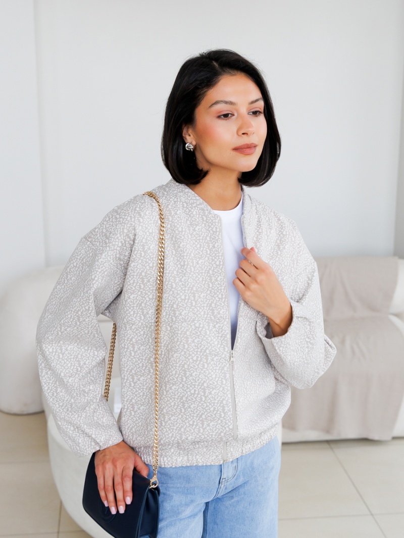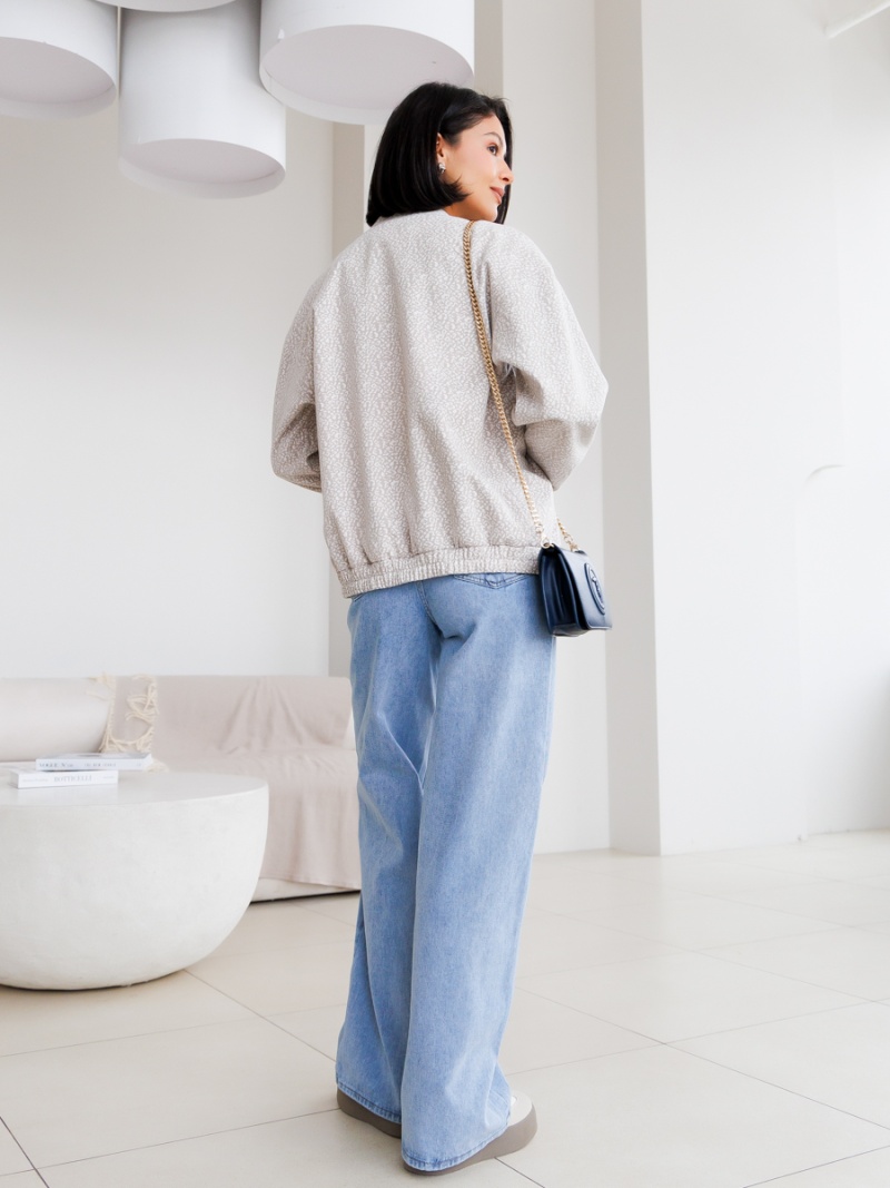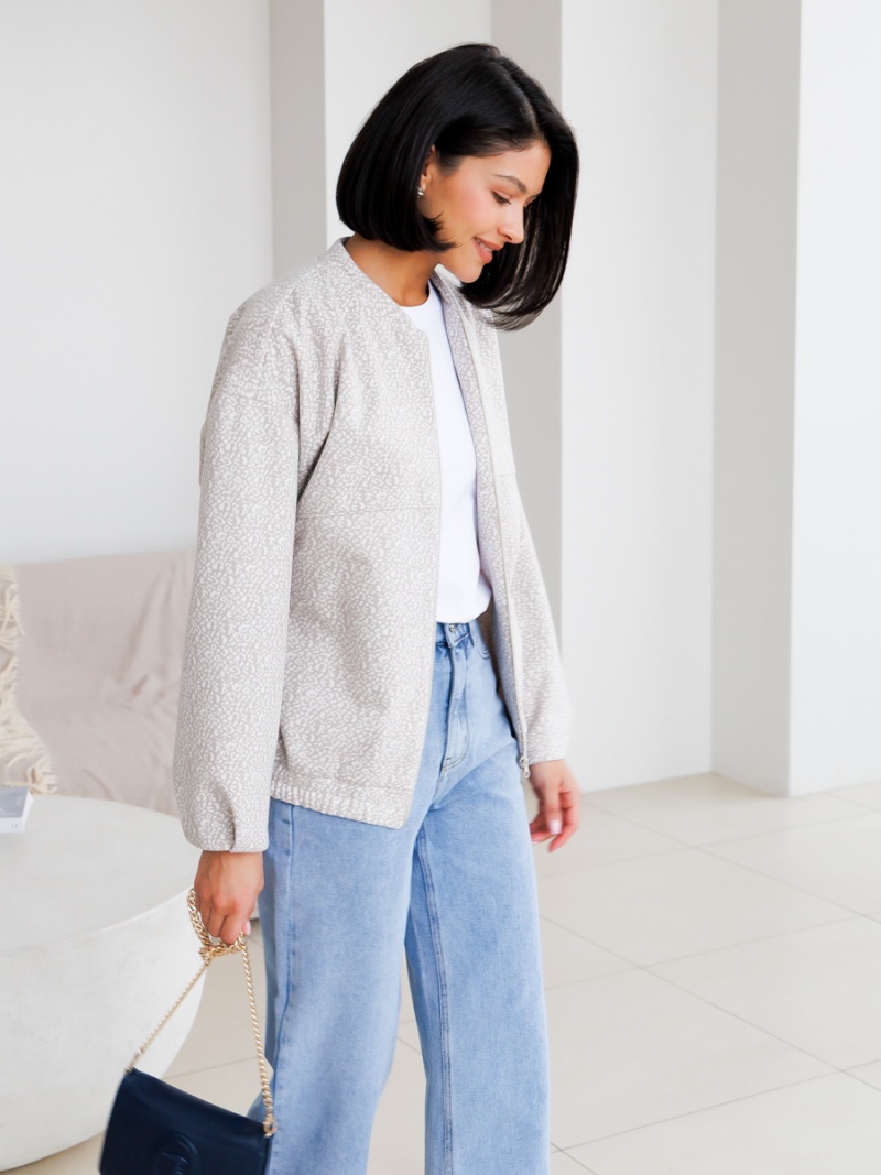 Трикотажный бомбер свободного силуэта без подклада. Воротник стойка. Застежка на молнию. Рукав спущенный. По низу рукава и изделия - защипы. Длина по спинке 61 см. Будь стильной вместе с одеждой Вишня!