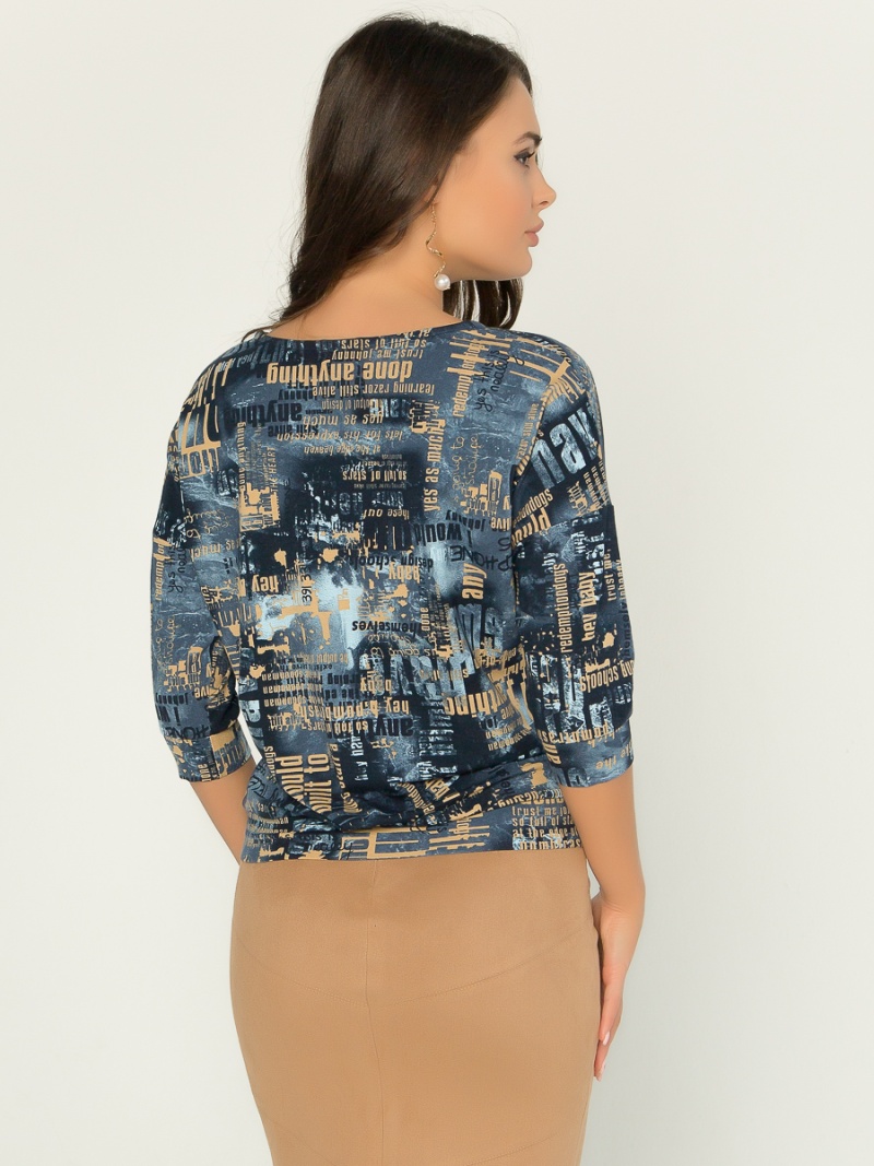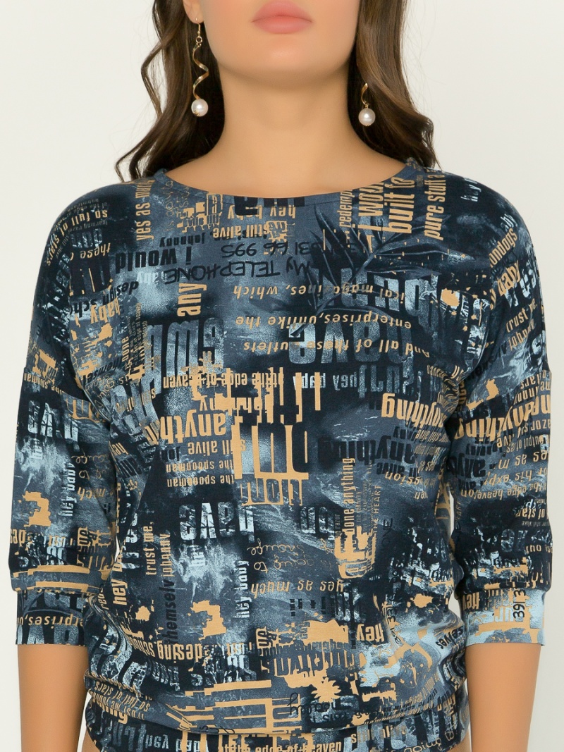 Джемпер из тонкого трикотажа. Покрой свободный, плечо немного спущено, за счет чего джемпер красиво драпируется на фигуре и подчеркивает женственность силуэта. Рукав три четверти с манжетой. Низ джемпера собран на пояс, свободно лежащий на бедрах. Длина по спинке 57 см.