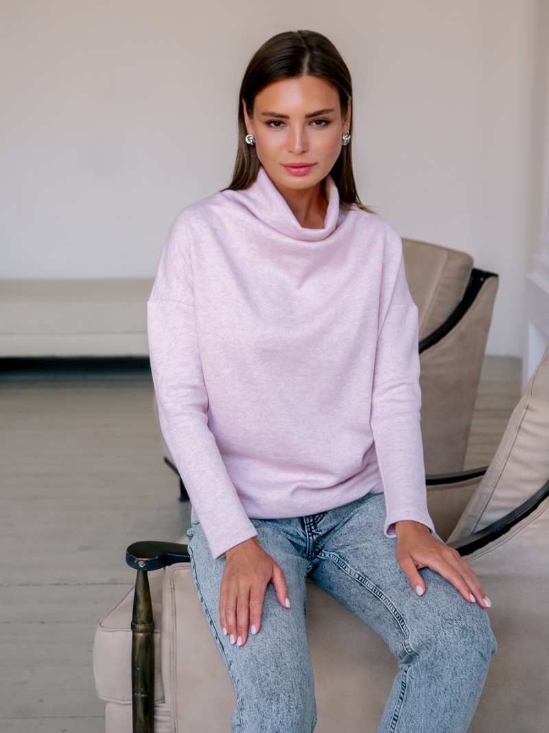 Джемпер из вязанного трикотажа. Верх джемпера объемный и красиво драпируется на плечах и по горловине. Длина по спинке 64 см. Будь стильной вместе с одеждой Вишня.