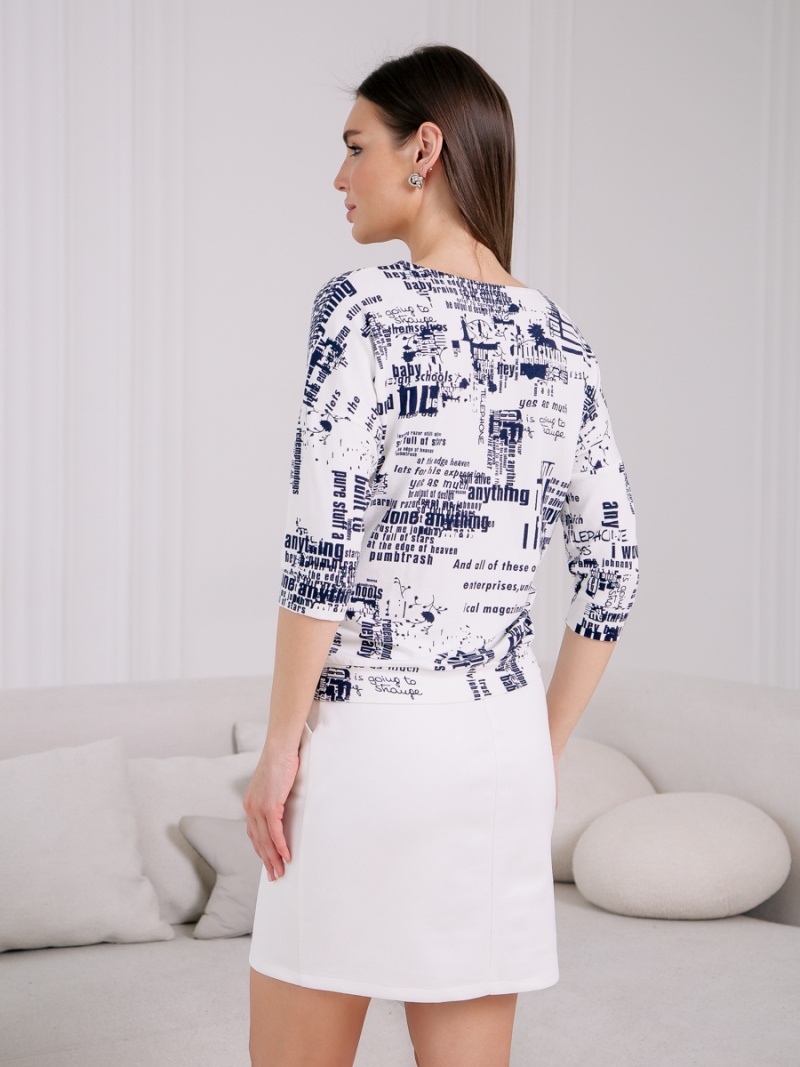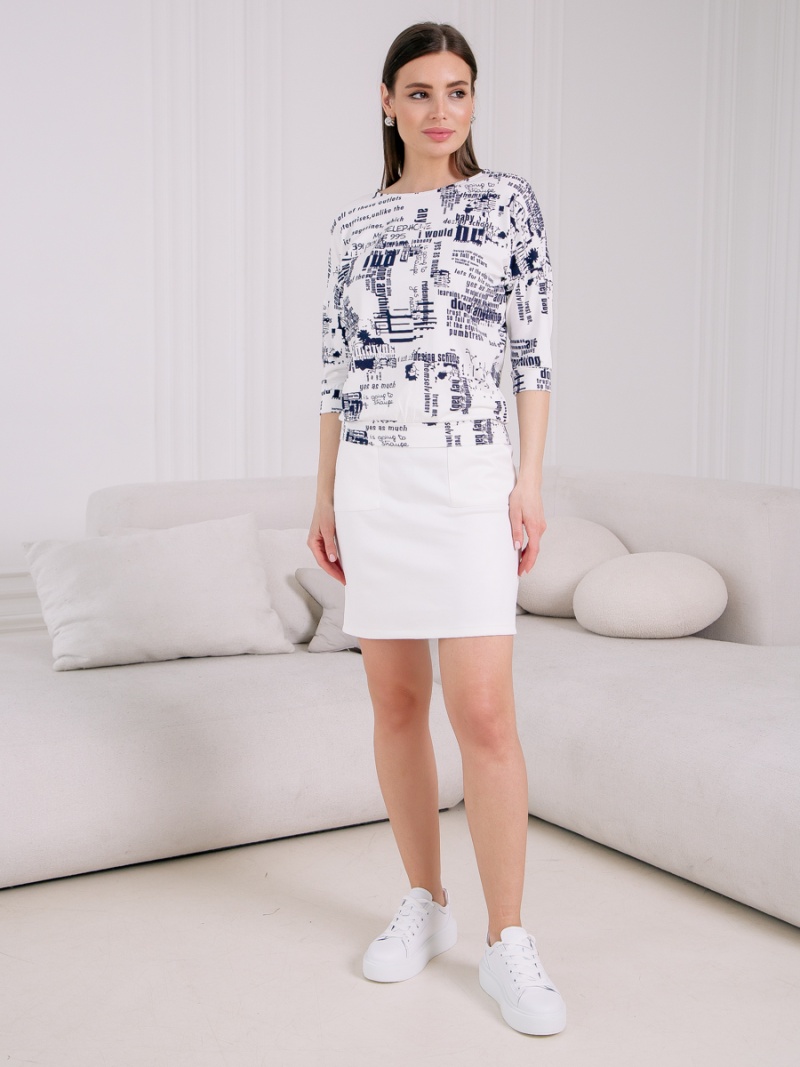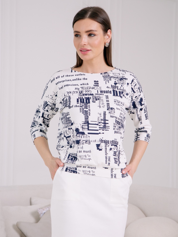 Джемпер из тонкого трикотажа с принтом. Покрой свободный, плечо немного спущено, за счет чего джемпер красиво драпируется на фигуре и подчеркивает женственность силуэта. Рукав три четверти с манжетой. Низ джемпера собран на пояс, свободно лежащий на бедрах. Длина по спинке 55 см. Будь стильной вместе с одеждой Вишня.