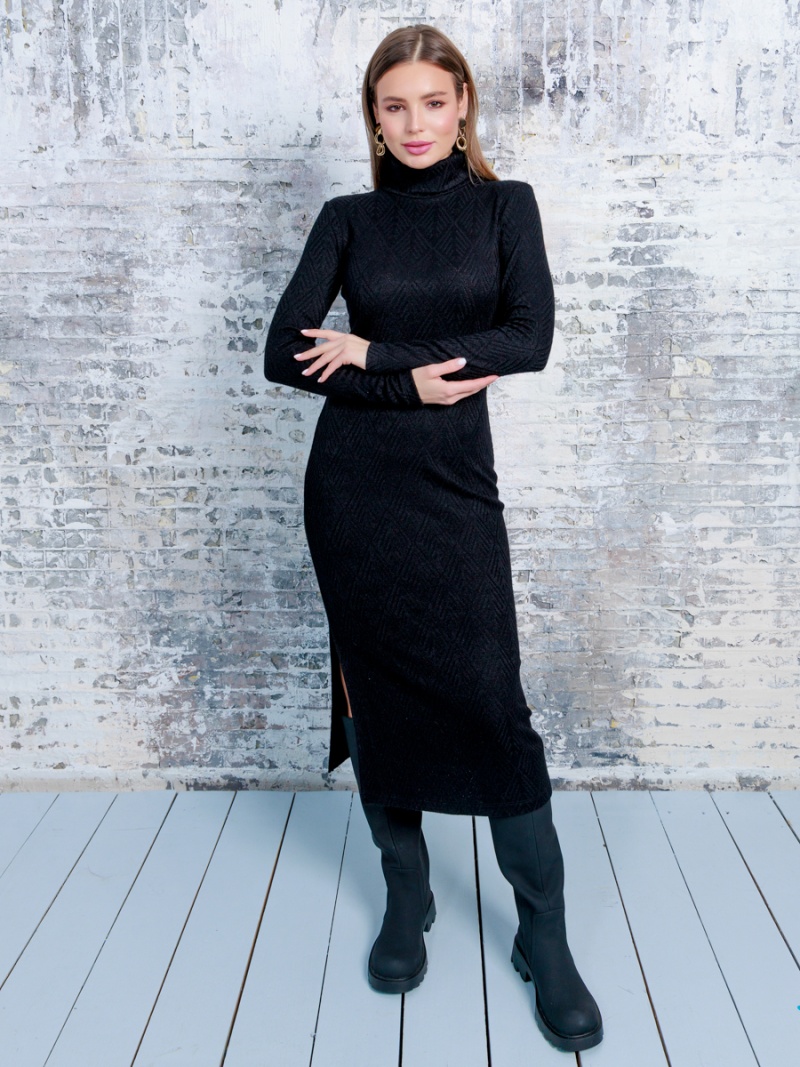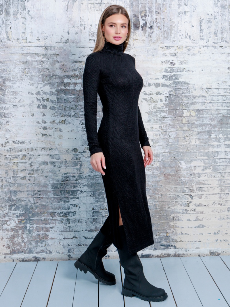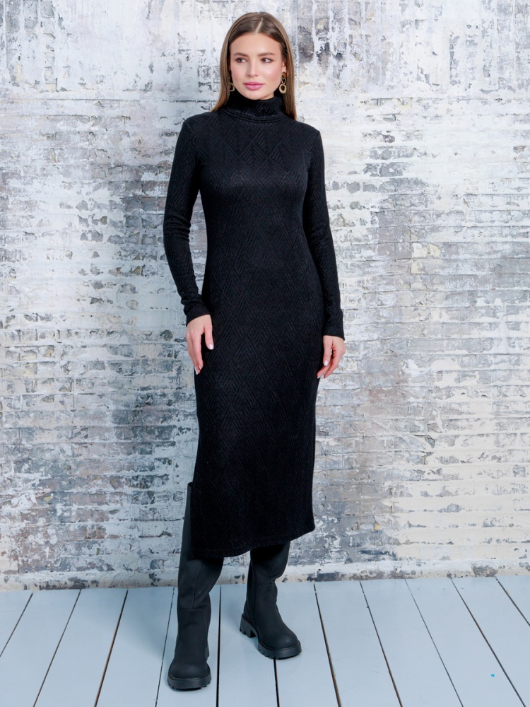 Платье-водолазка из трикотажа, длина миди, с разрезом по боковому шву, воротник стойка. Длина по спинке (без стойки) 117 см. Будь стильной вместе с одеждой Вишня!