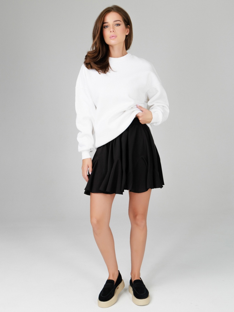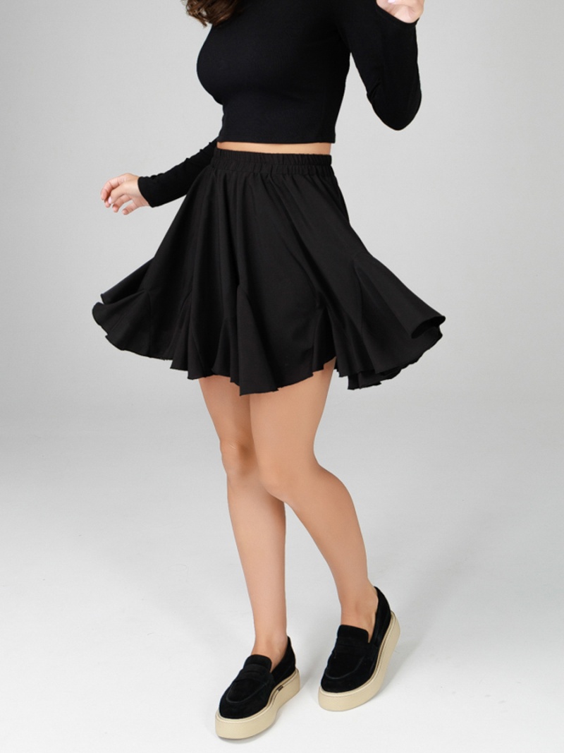 Юбка-солнце с декоративными воланами длиной мини. Пояс на резинке. Длина изделия с поясом 44 см. Будь стильной вместе с одеждой Вишня!