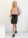 Короткая прямая юбка на подкладке. Выполнена из мягкой костюмной ткани с люрексом. По спинке потайная молния в цвет. Юбку можно носить с любым Вашим "верхом" либо приобрести бомбер из этой же коллекции для создания комплекта. Длина по спинке 49 см с поясом. Будь стильной вместе с одеждой Вишня!