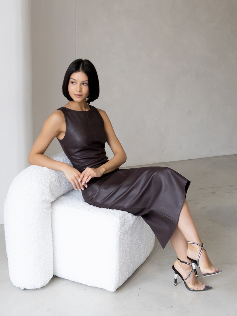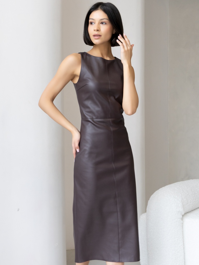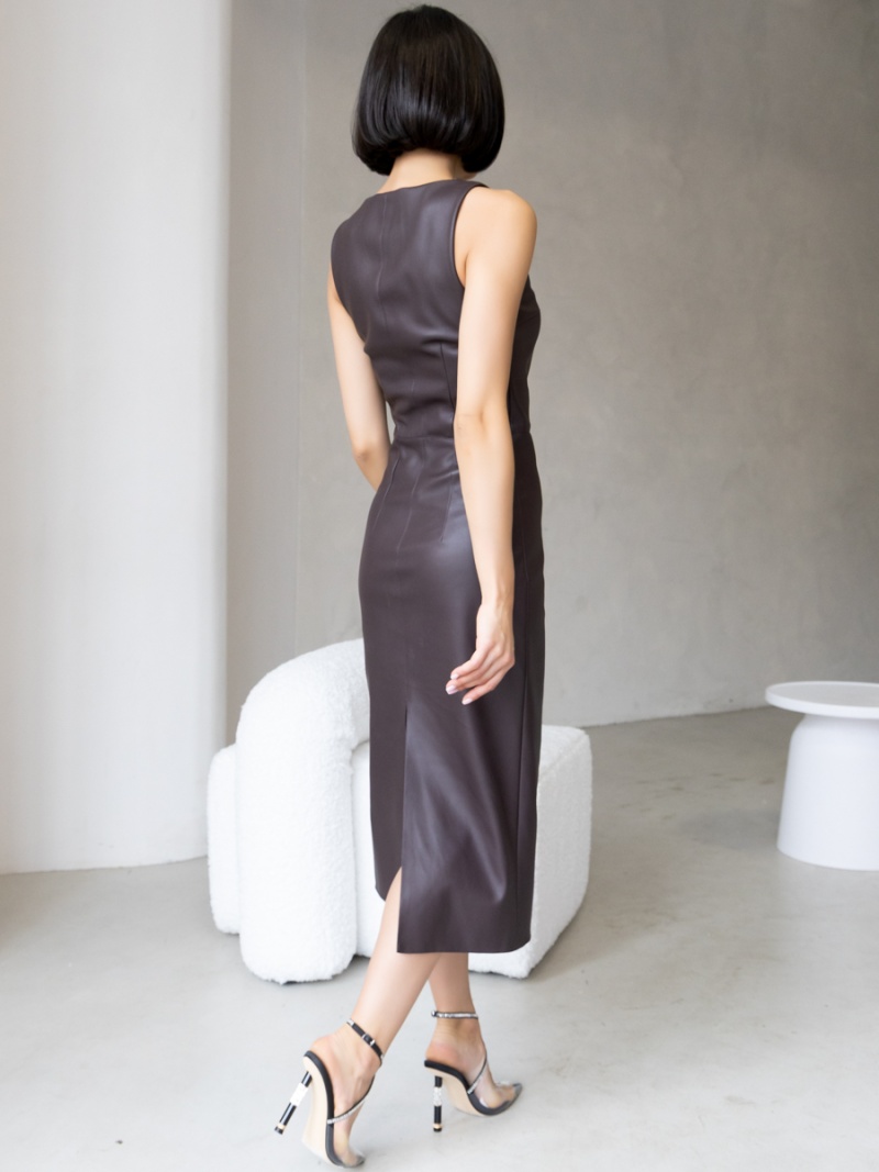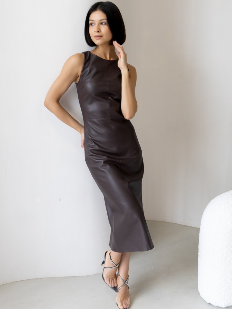 Платье-футляр длины миди с разрезом сзади из эластичной эко-кожи с замшевой изнанкой . Кожа незначительно растягивается и за счет этого платье идеально садится по фигуре. Без рукава, отрезная линия талии. Застежка на молнию в боковом шве. Длина по спинке 119 см. Будь стильной вместе с одеждой Вишня!