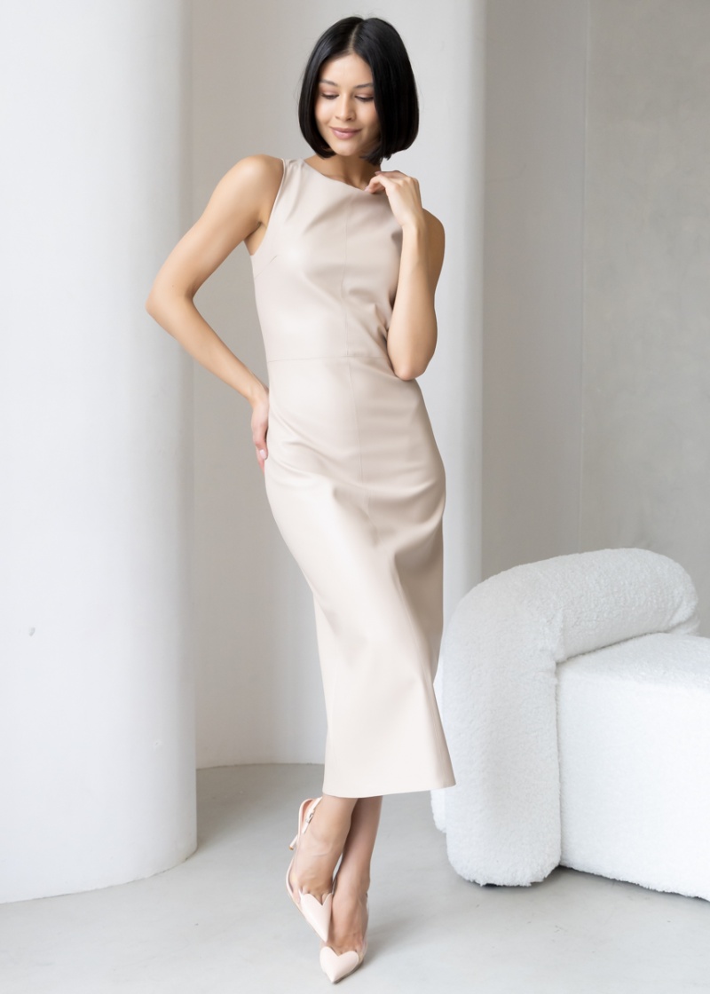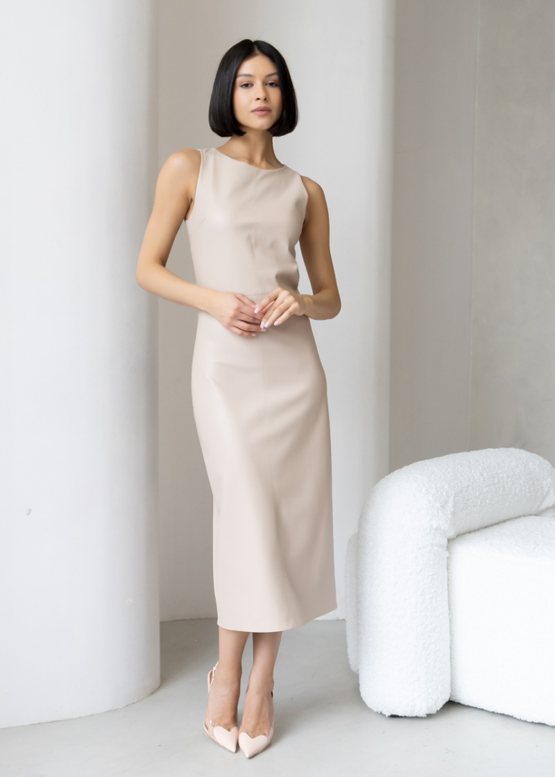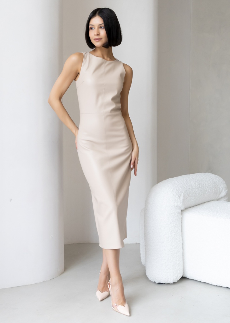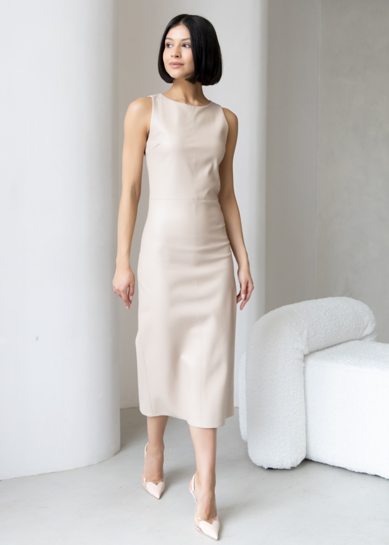 Платье-футляр длины миди с разрезом сзади из эластичной эко-кожи с замшевой изнанкой . Кожа незначительно растягивается и за счет этого платье идеально садится по фигуре. Без рукава, отрезная линия талии. Застежка на молнию в боковом шве. Длина по спинке 119 см. Будь стильной вместе с одеждой Вишня!