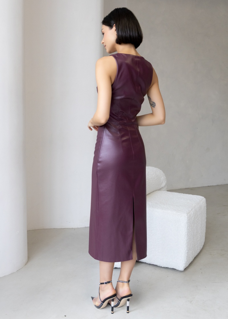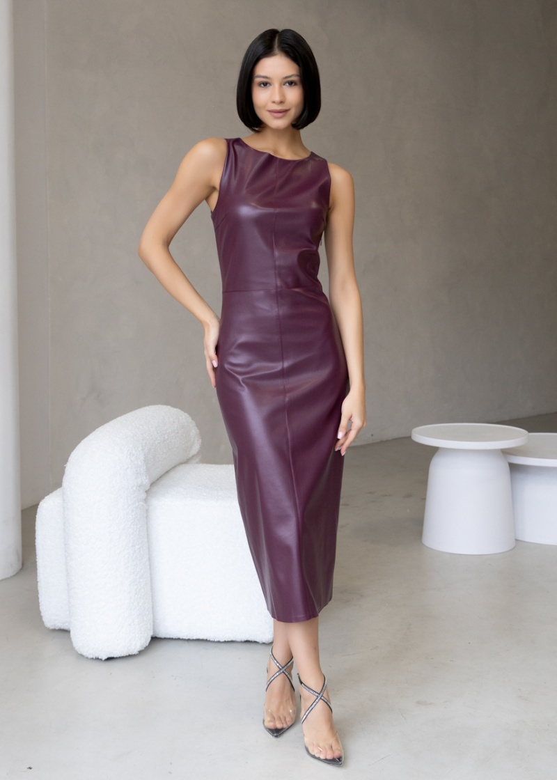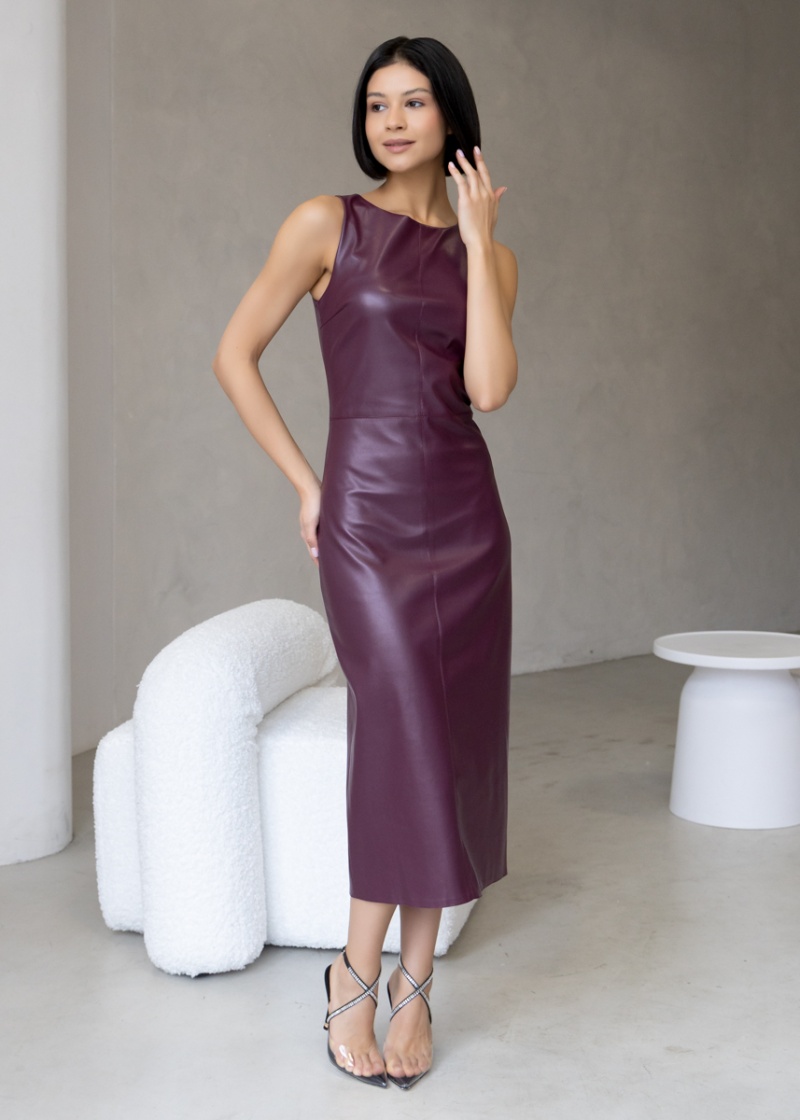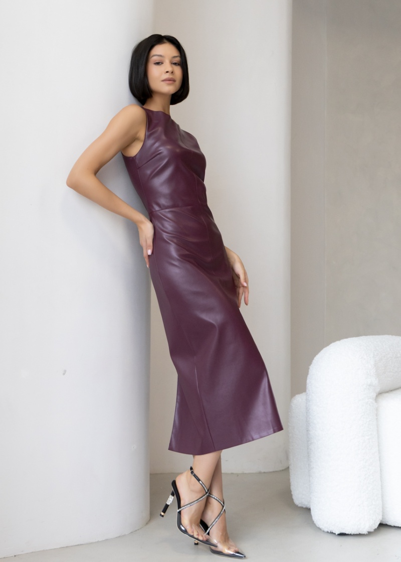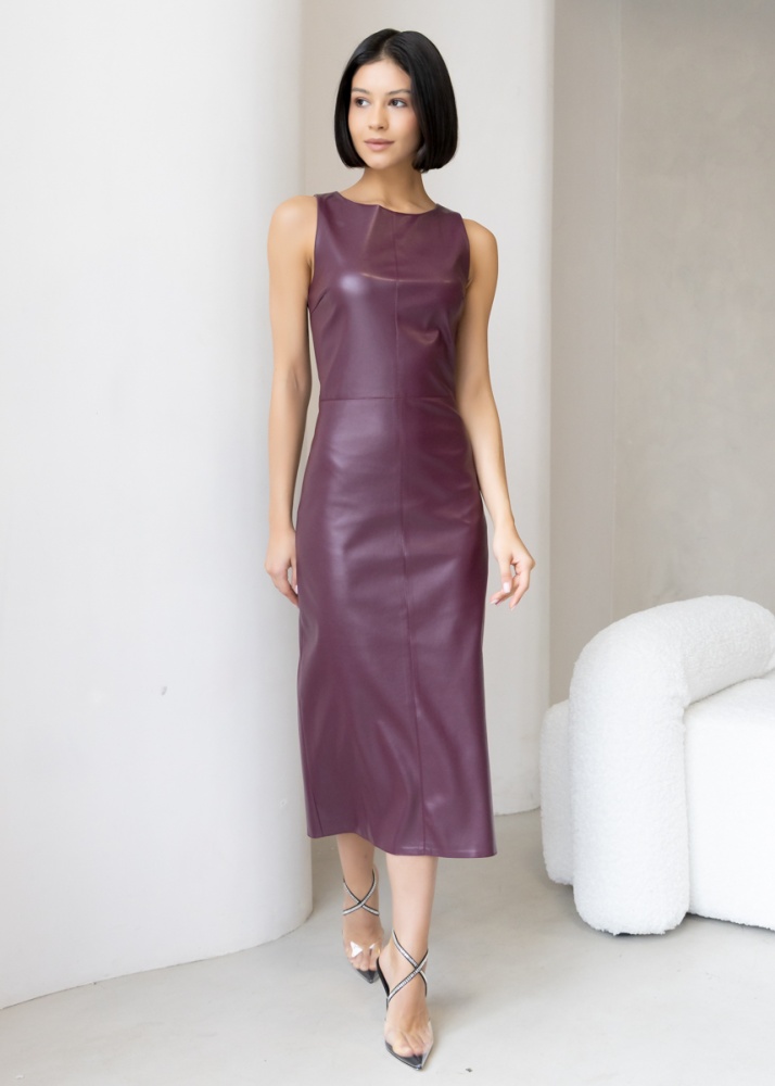 Платье-футляр длины миди с разрезом сзади из эластичной эко-кожи с замшевой изнанкой . Кожа незначительно растягивается и за счет этого платье идеально садится по фигуре. Без рукава, отрезная линия талии. Застежка на молнию в боковом шве. Длина по спинке 119 см. Будь стильной вместе с одеждой Вишня!