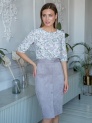 Юбка прямого силуэта, зауженная к низу. Выполнена из плотной и эластичной эко-замши, которая незначительно растягивается и за счет этого идеально садится по фигуре. Верх юбки на фигурном поясе, посадка четко по талии. Спереди – имитация планки с декоративными пуговицами и шлицей. На спинке застежка-молния. Длина по спинке 62 см.